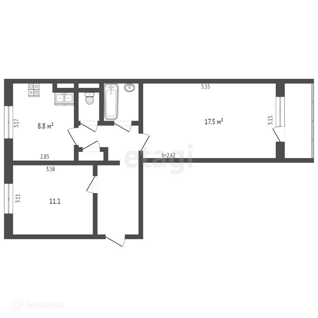 Общая площадь 51 м2