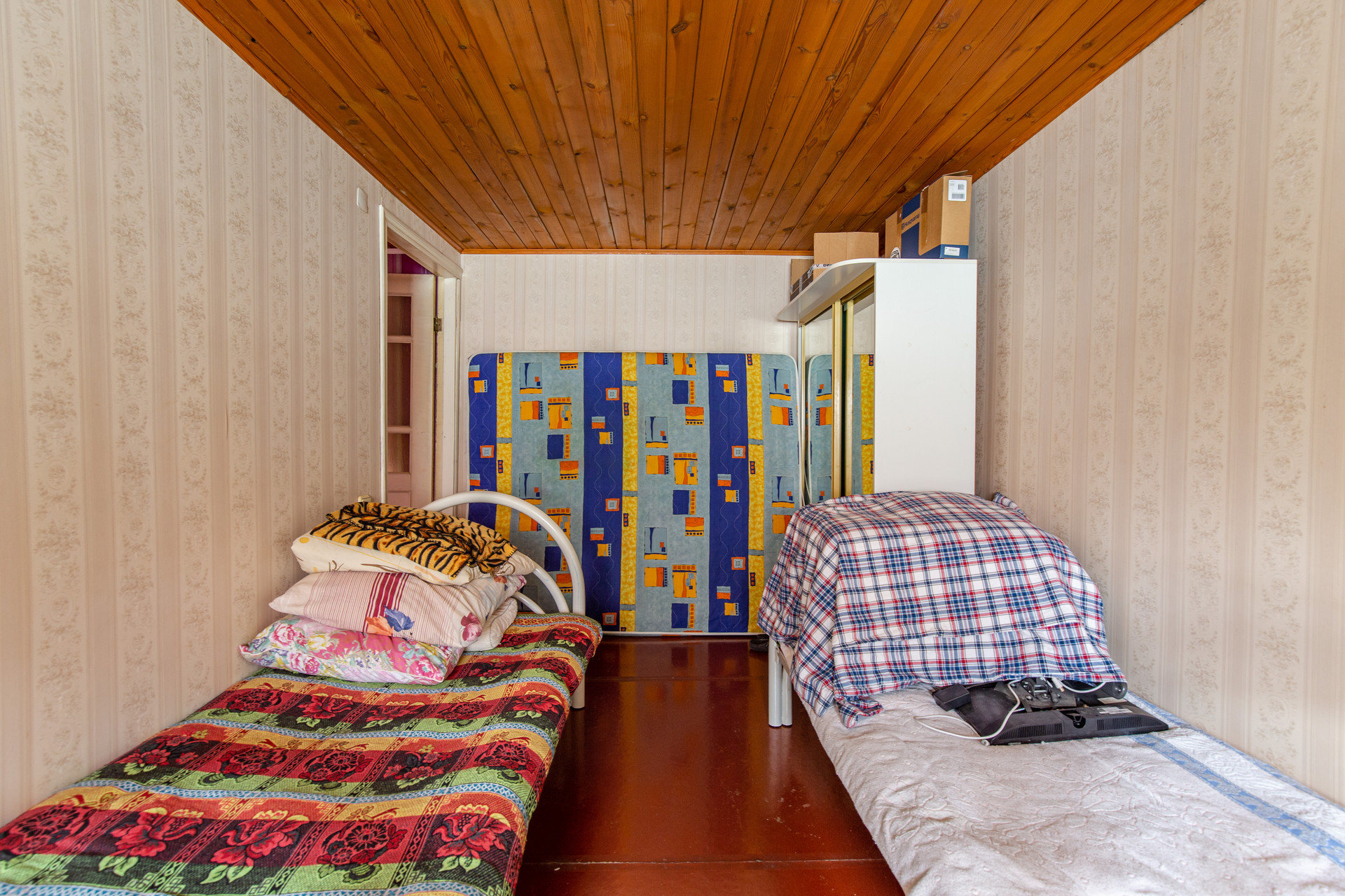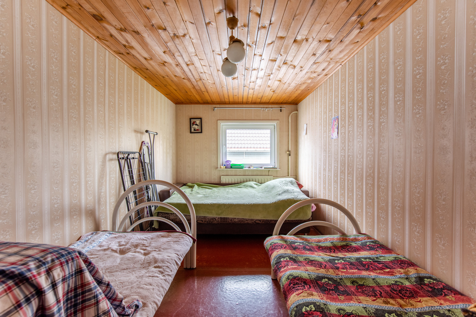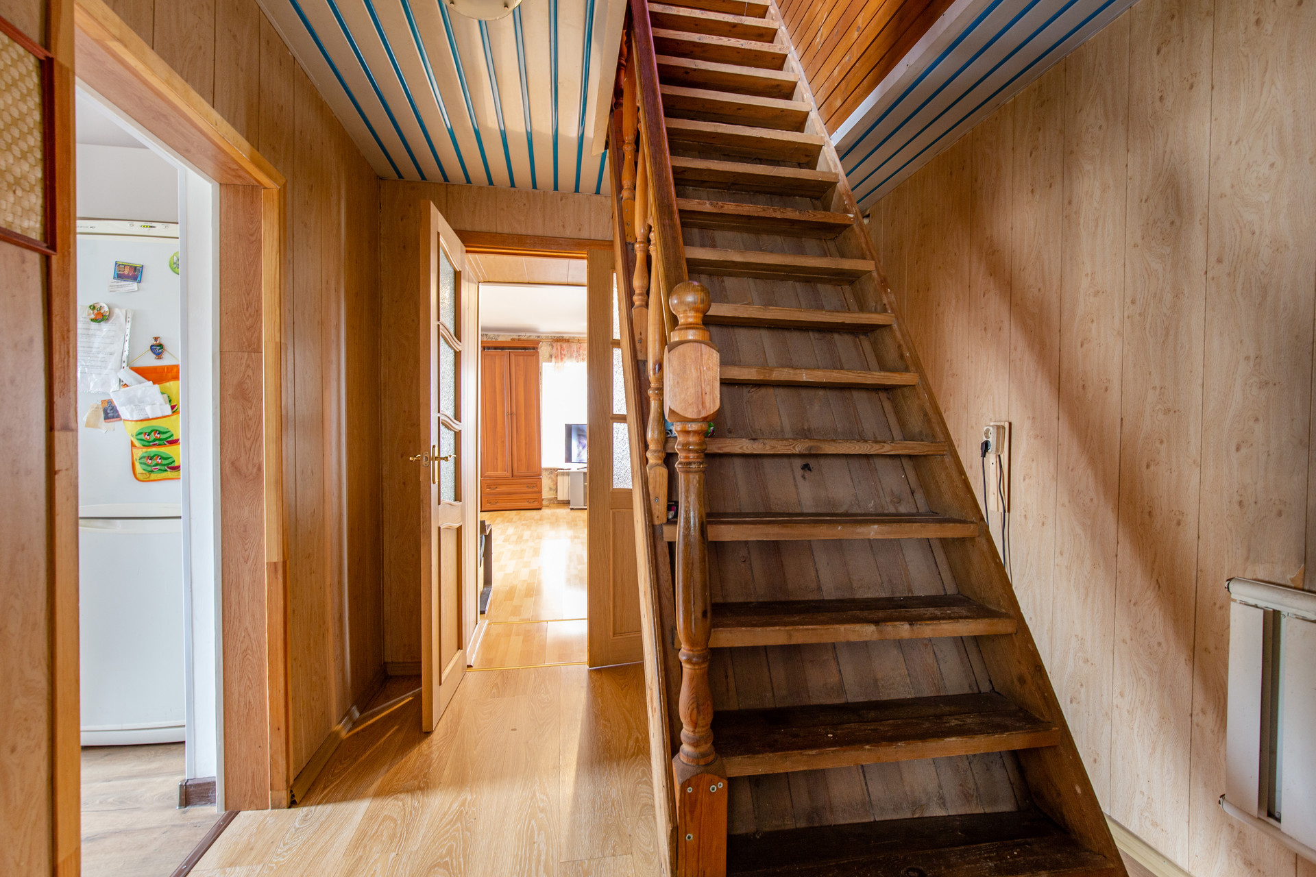 Фундамент ленточный, дом из белого кирпича обшитый вагонкой, перекрытия деревянные.
