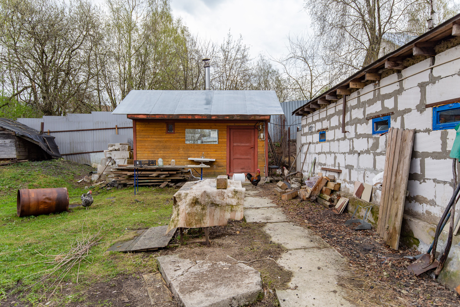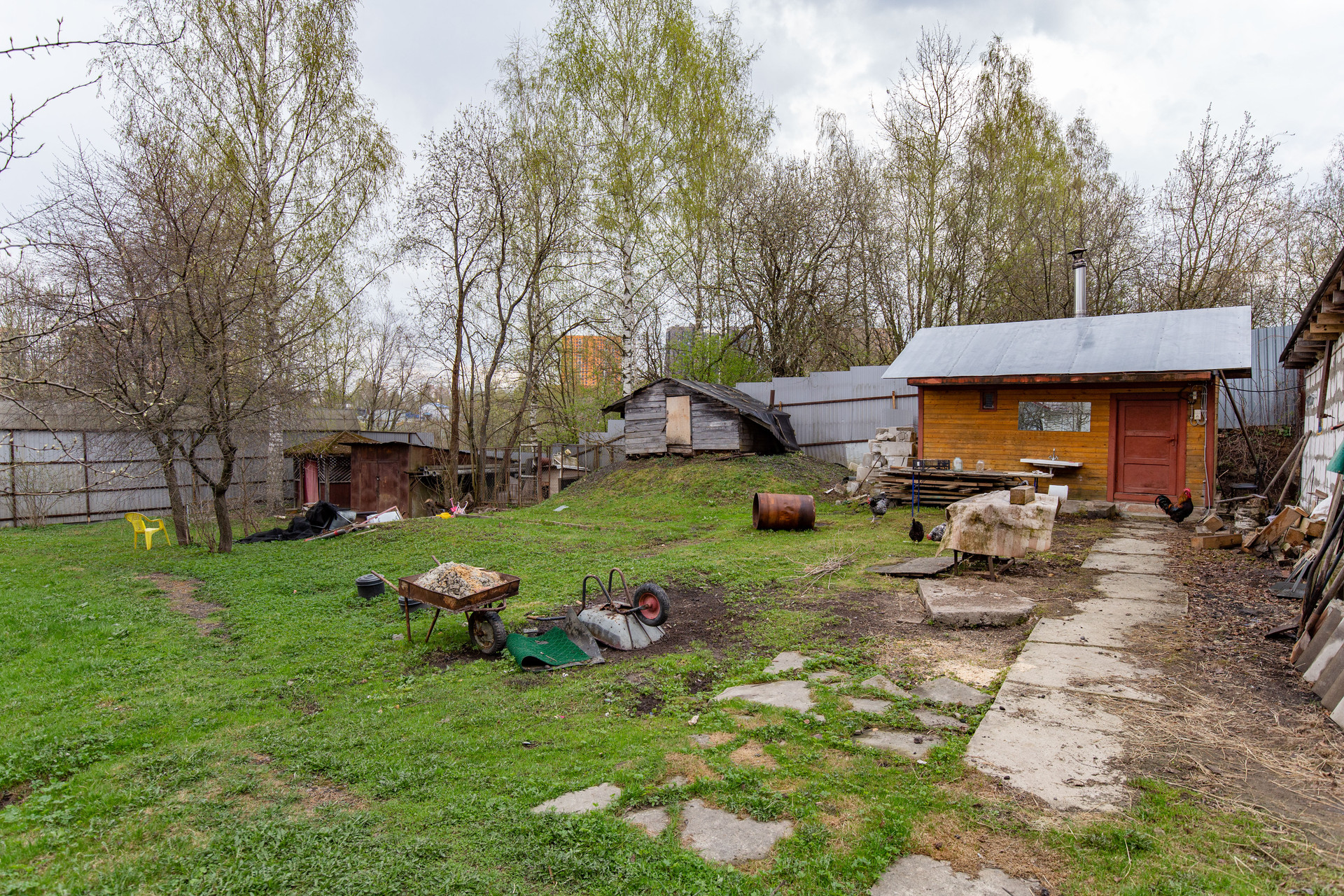 На участке баня, погреб, яблоки, вишни, груши.