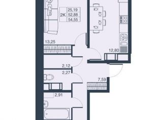 2-комнатная квартира на продажу, 54.52 м2, Ручьёвский проспект, 3к1