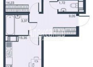 Продажа 2-комнатной квартиры, 54.35 м2, Ручьёвский проспект, 3к1