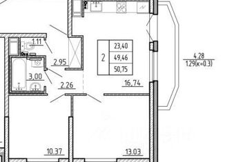 Общая площадь: 49.5 м2