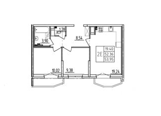 Общая площадь: 55.4 м2