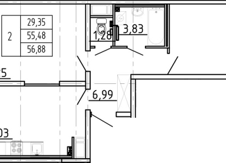 Продажа 2-комнатной квартиры, 56.73 м2, улица Шувалова, 20к1