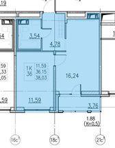 Общая площадь: 38.2 м2