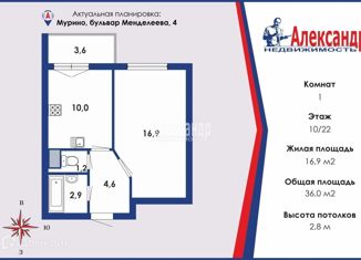 Продаю 1-ком. квартиру, 38.2 м2, проспект Авиаторов Балтики, 25