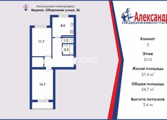 Продается 2-ком. квартира, 54.7 м2, Оборонная улица, 26