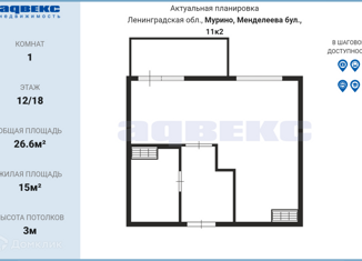 Продам квартиру студию, 26.6 м2, бульвар Менделеева, 11к2
