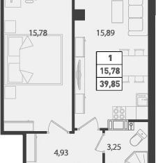 Общая площадь: 39.85 м2