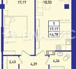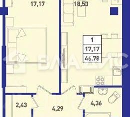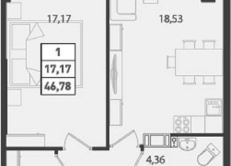 Однокомнатная квартира на продажу, 46.93 м2