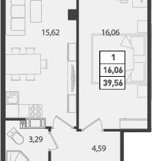 Общая площадь: 39.56 м2