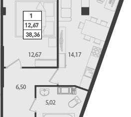 Общая площадь: 38.36 м2