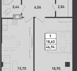 Общая площадь: 46.94 м2