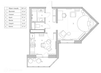 Общая площадь: 39.7 м2