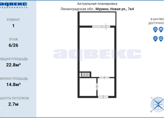 Продажа квартиры студии, 27.1 м2, Новая улица, 15