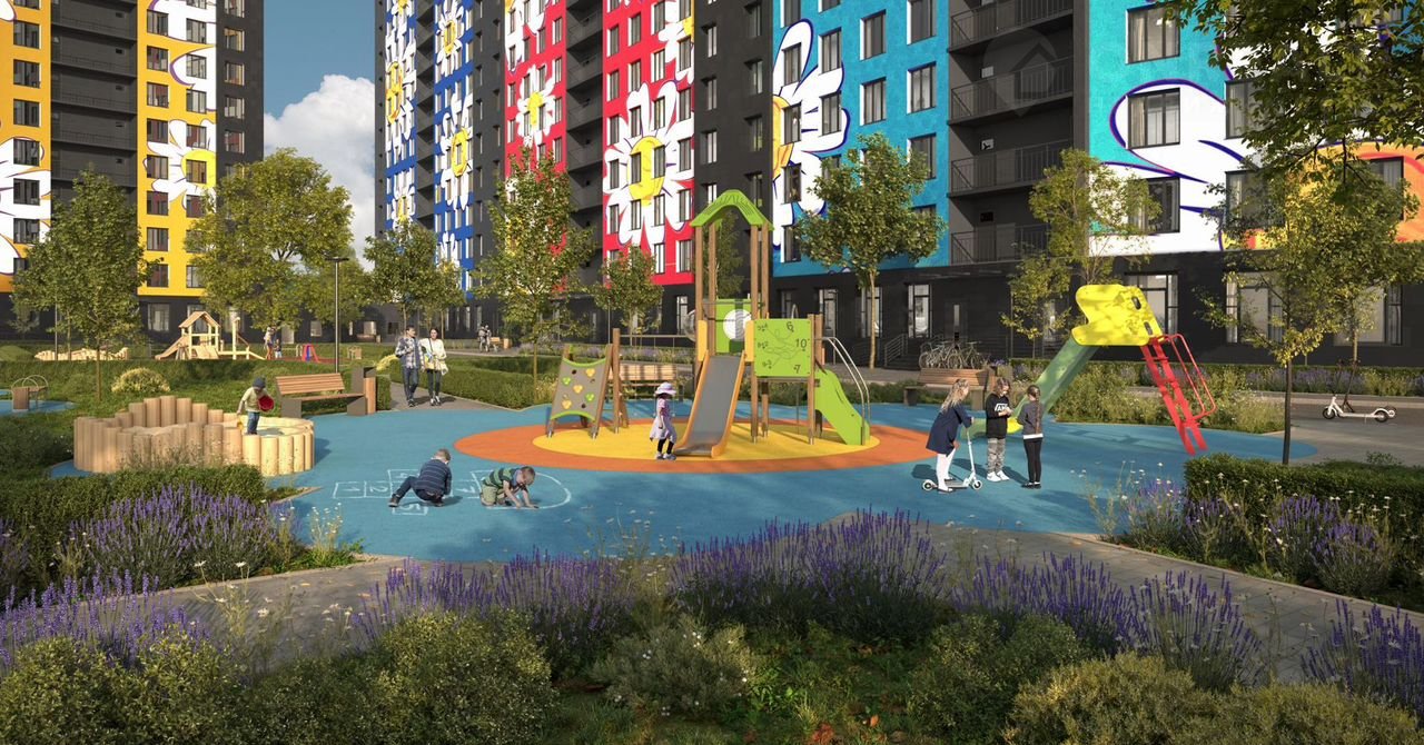 Жилой компрлeкc стpoится в пocёлке Муpинo, мeжду рекoй Охтa и Шосcе в Лаврики.