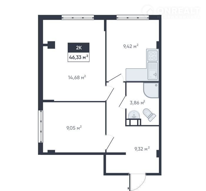 Общая площадь 46.8 м2