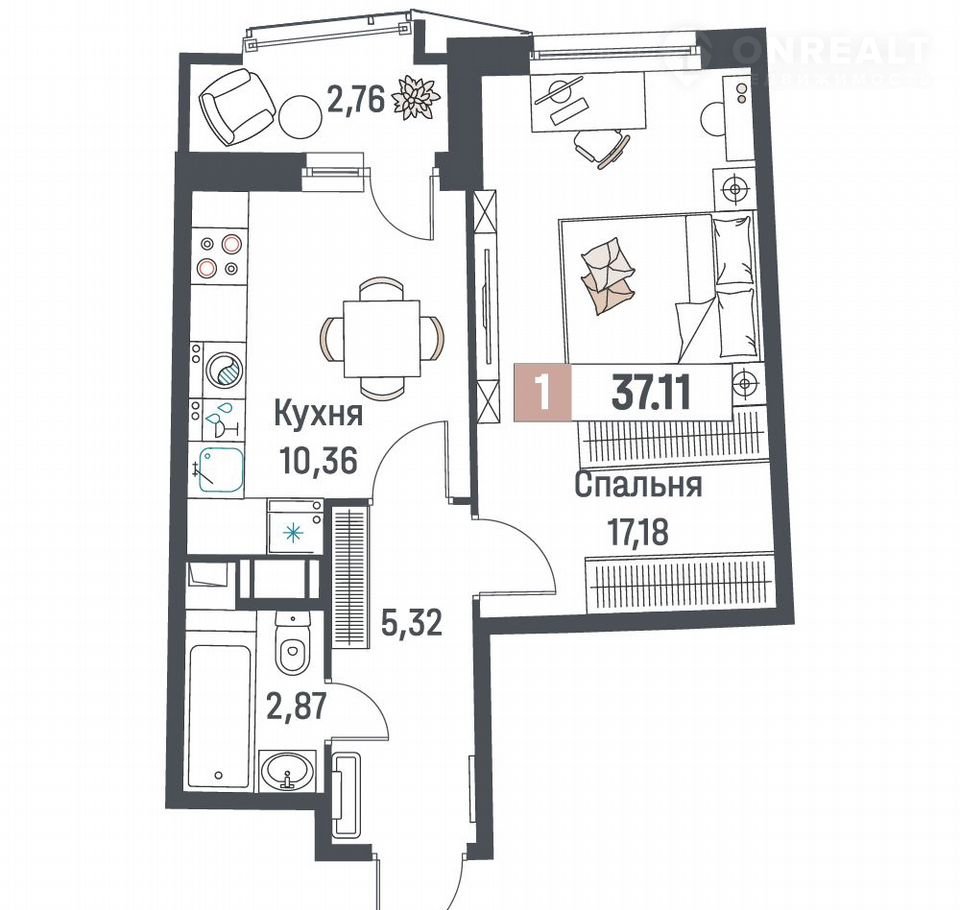 Общая площадь 37.1 м2
