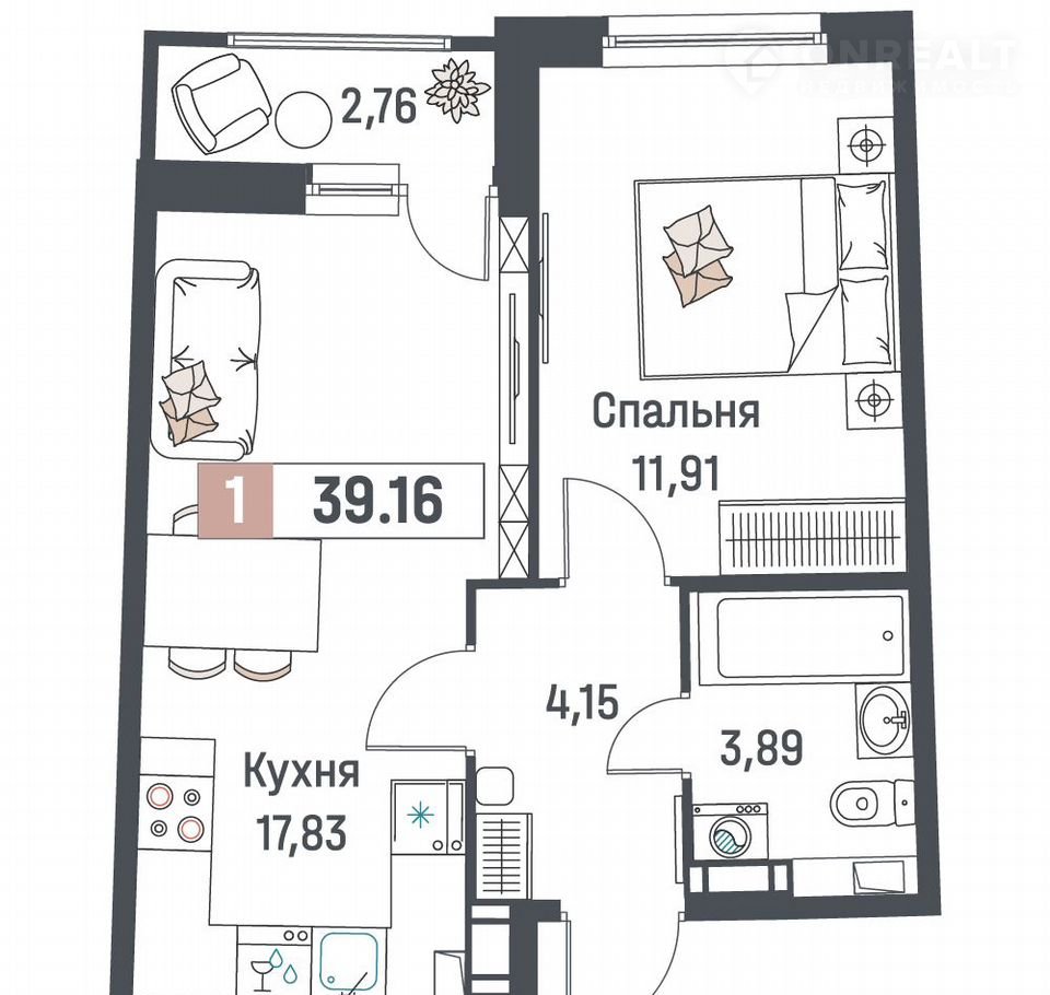 Балкон, лоджия 1 лоджия