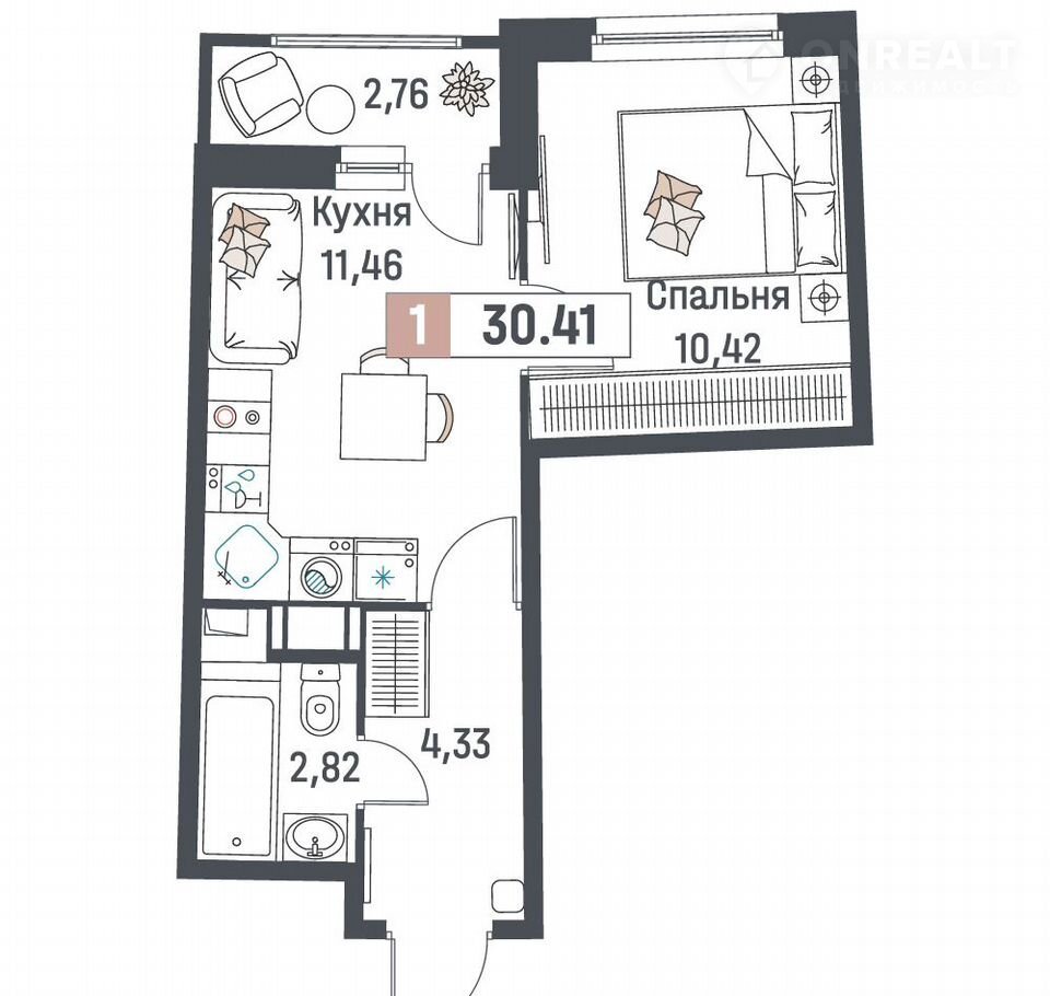 Общая площадь 30.4 м2