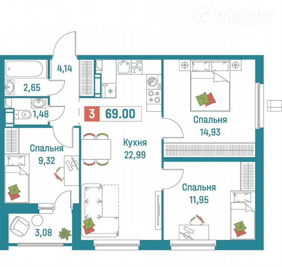 Общая площадь 69 м2