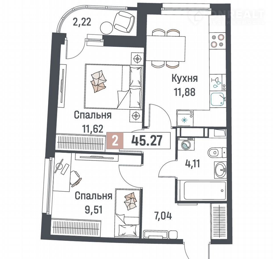 Количество комнат 2