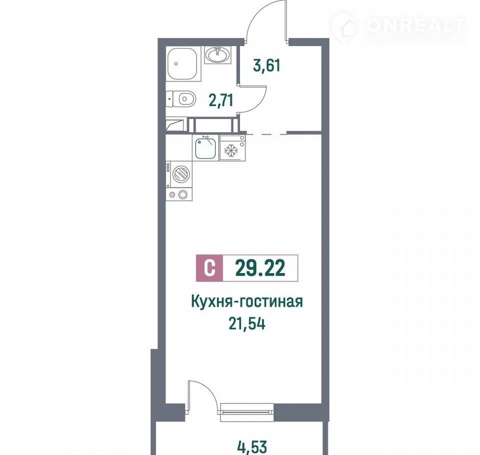 Общая площадь 29.2 м2