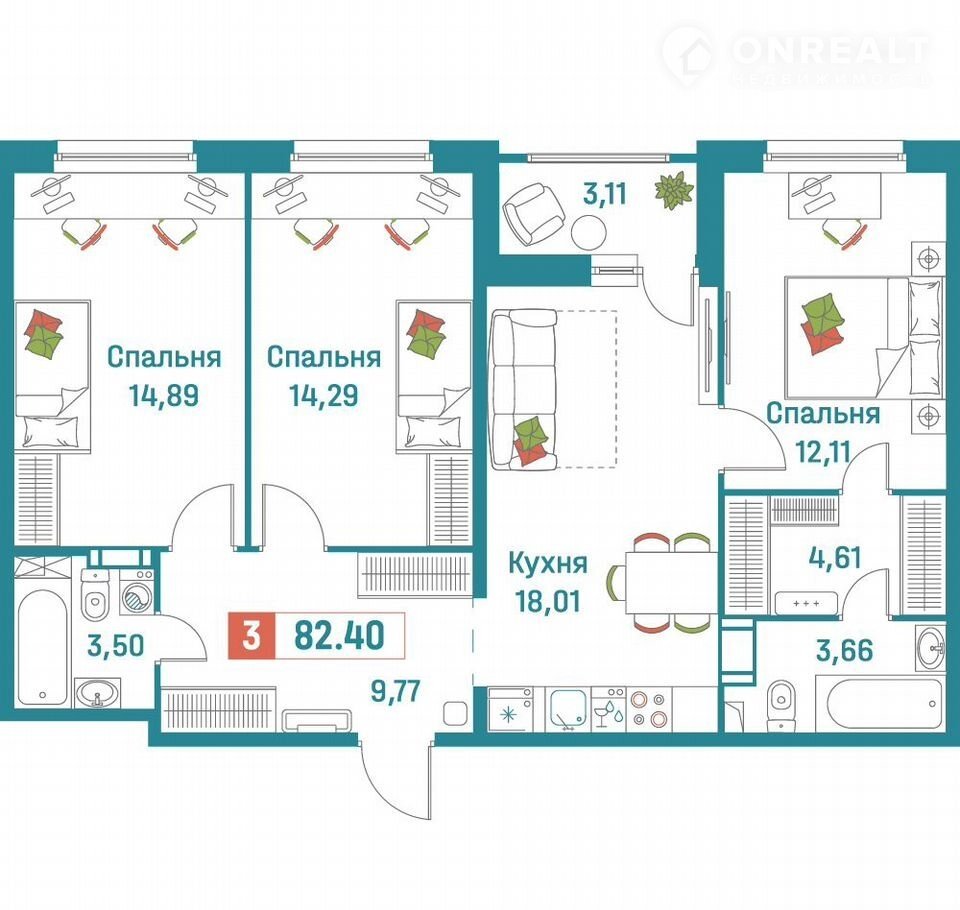 Общая площадь 82.4 м2