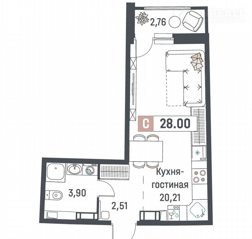 Общая площадь 28 м2