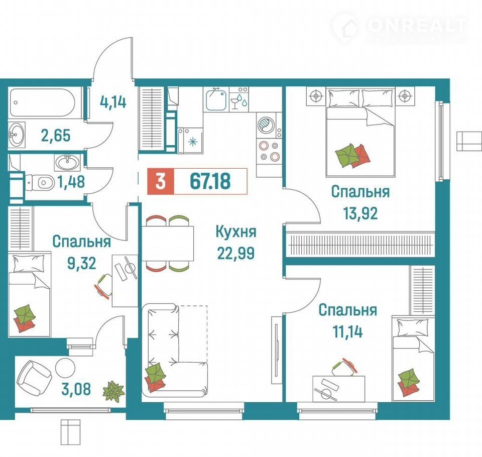 Общая площадь 67.2 м2