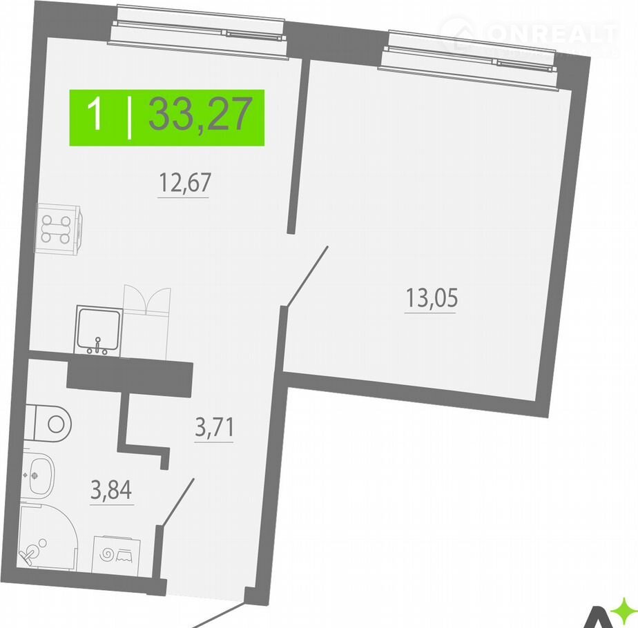 1-комнатная квартира, 33.3 м2, этаж 12 / 20, на продажу в Мурино