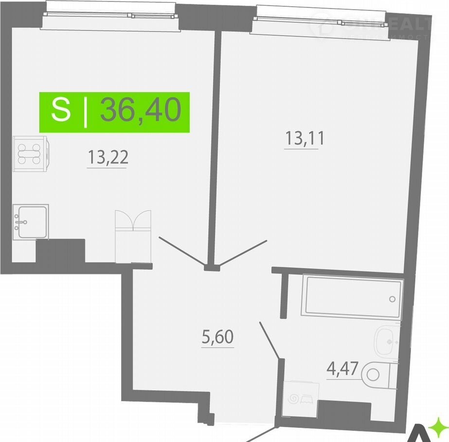 1-комнатная квартира, 36.4 м2, этаж 15 / 20, на продажу в Мурино