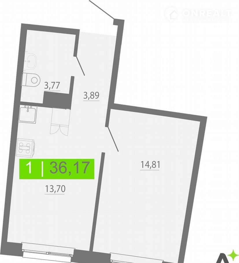 1-комнатная квартира, 36.2 м2, этаж 13 / 20, на продажу в Мурино