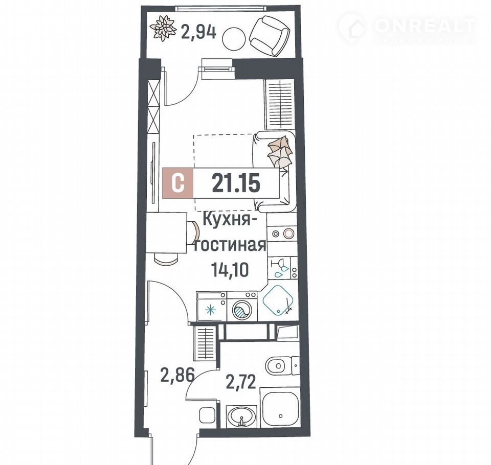 Общая площадь 21.2 м2