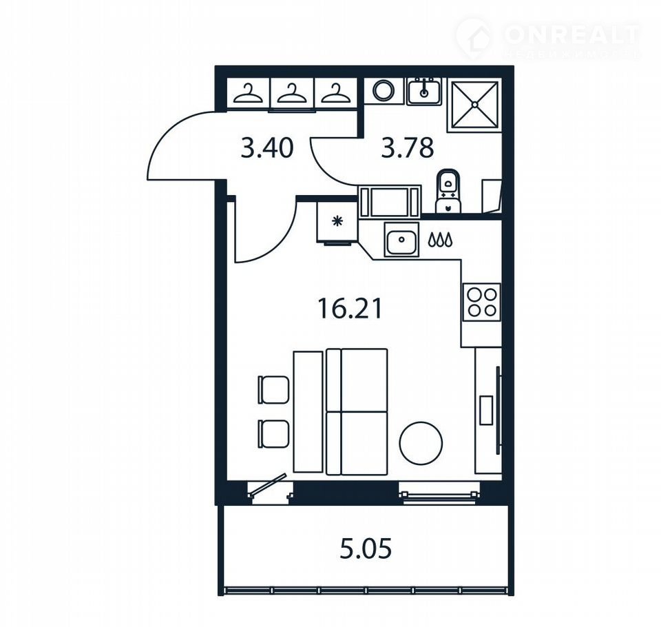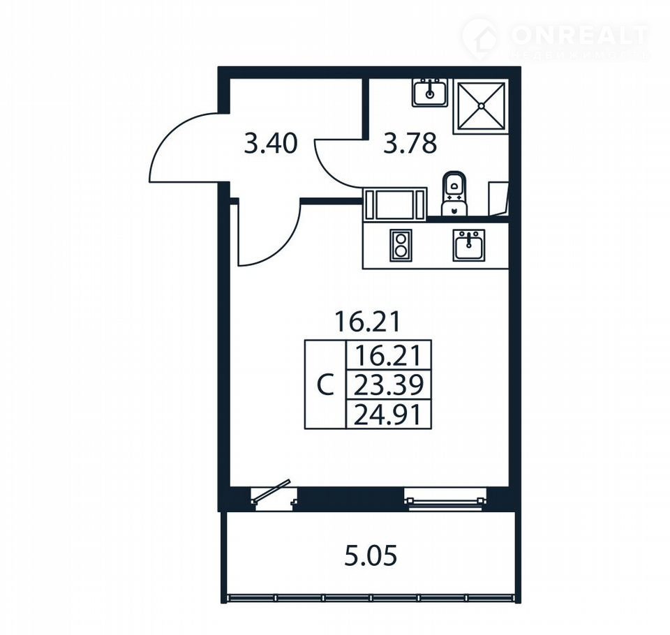 Общая площадь 23 м2