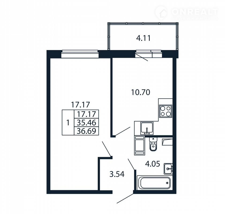 Общая площадь 34.9 м2