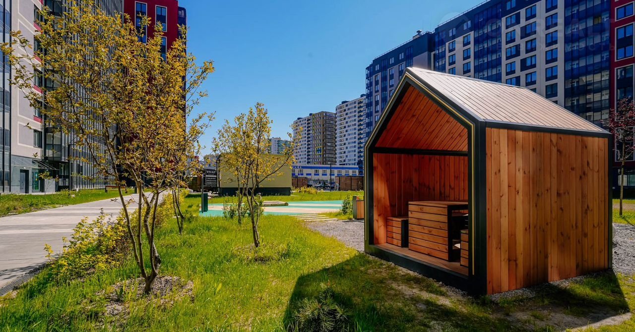 Квартал выполнен в скандинавском стиле с элементами хюгге: уютные беседки, деревянная мебель и тёплое освещение в закрытых дворах. В подъездах – просторные колясочные и сквозные выходы во двор и на улицу.