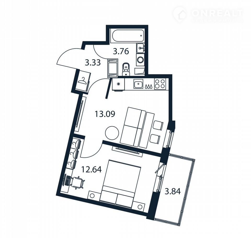Жилая площадь 12.6 м2