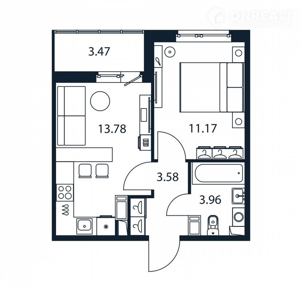 1-комнатная квартира, 32.1 м2, этаж 12 / 12, на продажу в Мурино, Романовская улица, 9