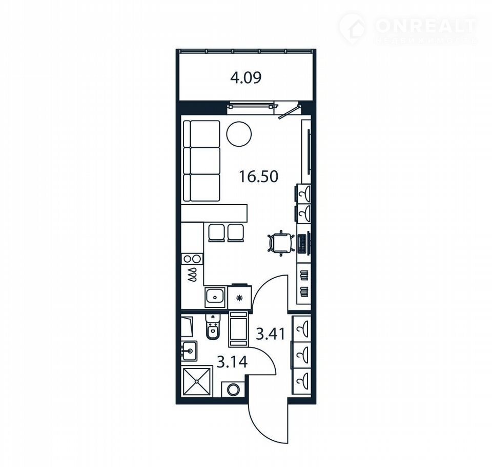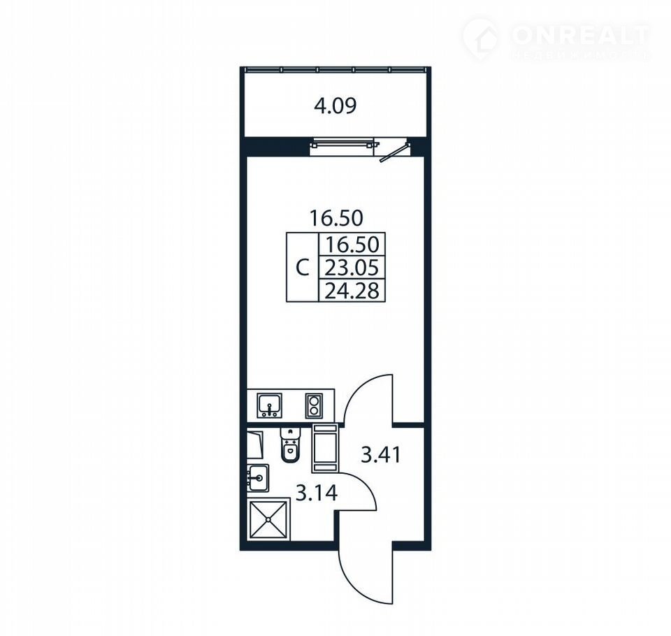 Общая площадь 22.6 м2