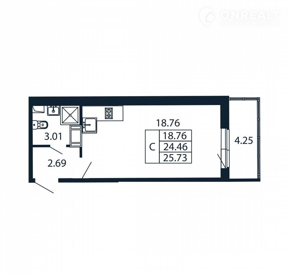 Квартира студия, 23.4 м2, этаж 12 / 12, на продажу в Мурино, Ручьёвский проспект, 20