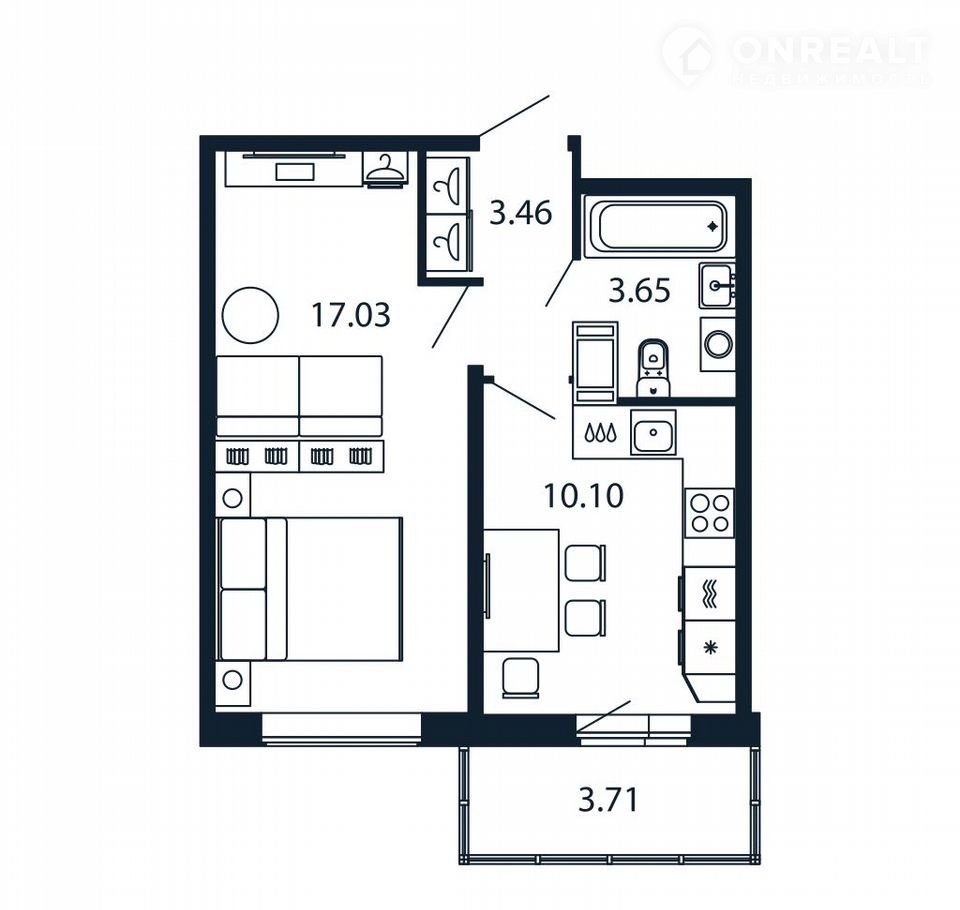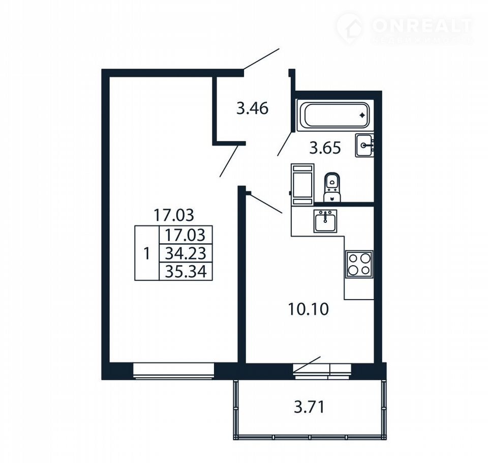Общая площадь 33.7 м2