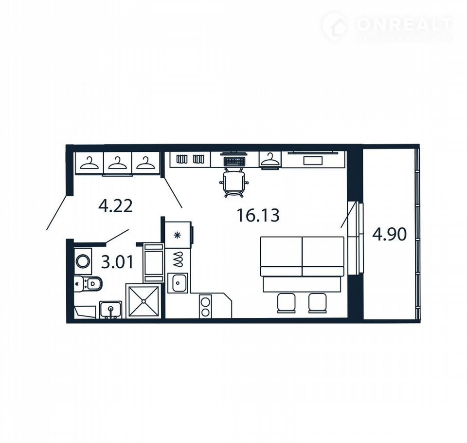 Общая площадь 22.8 м2