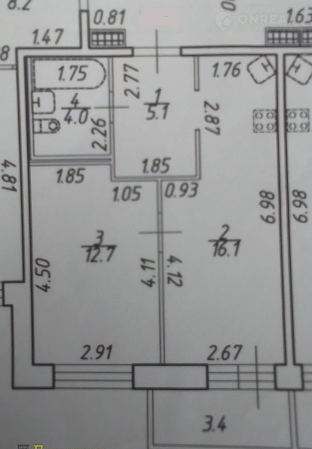 Планировка квартиры: евродвушка. Комната правильной формы 12,7 кв.м. и просторная кухня-гостиная 16,1 кв.м. Балкон 3,4 кв.м