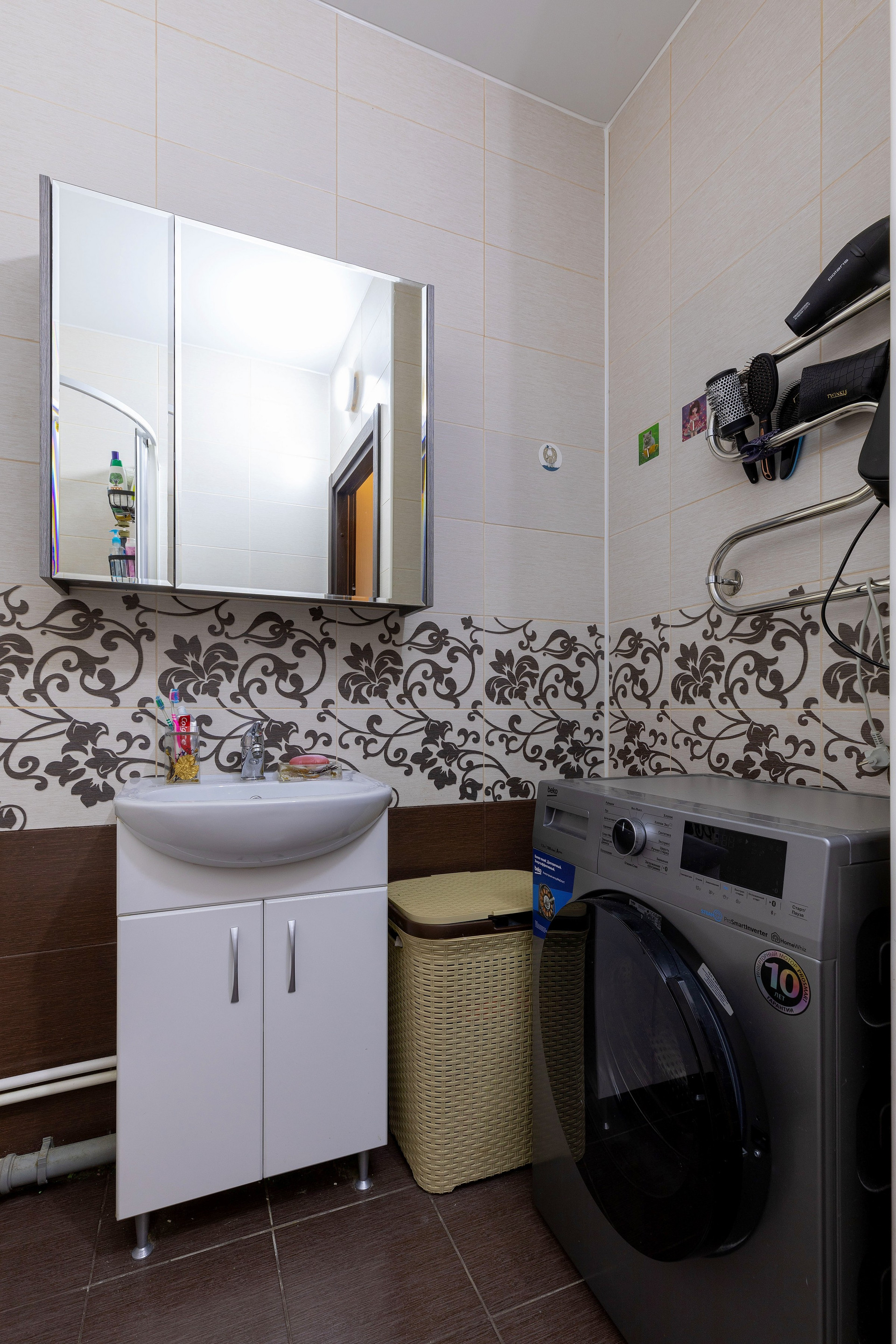 - Просторный с/у с ванной и нишей для стиральной машинки
