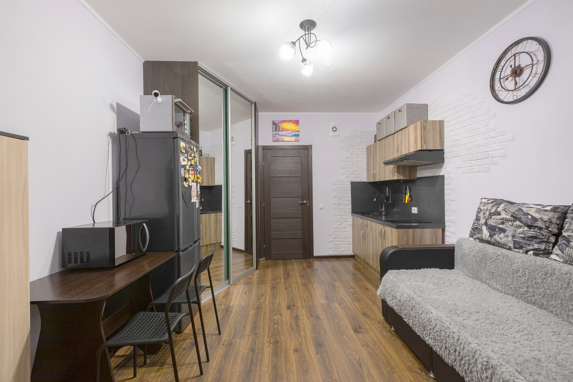 Просторная, квадратная студия, в 5 минутах на маршрутке до метро, полностью готовая для жизни