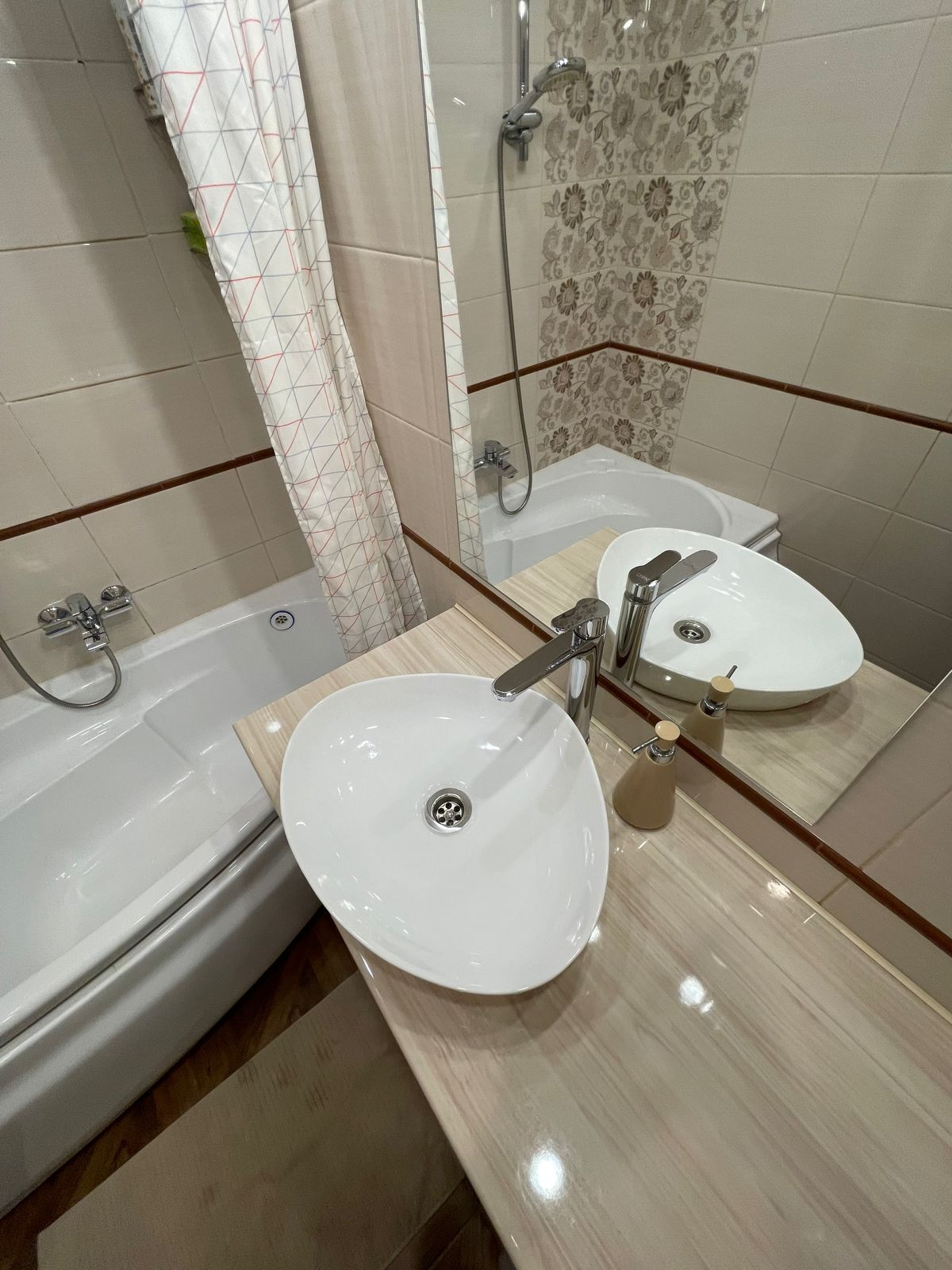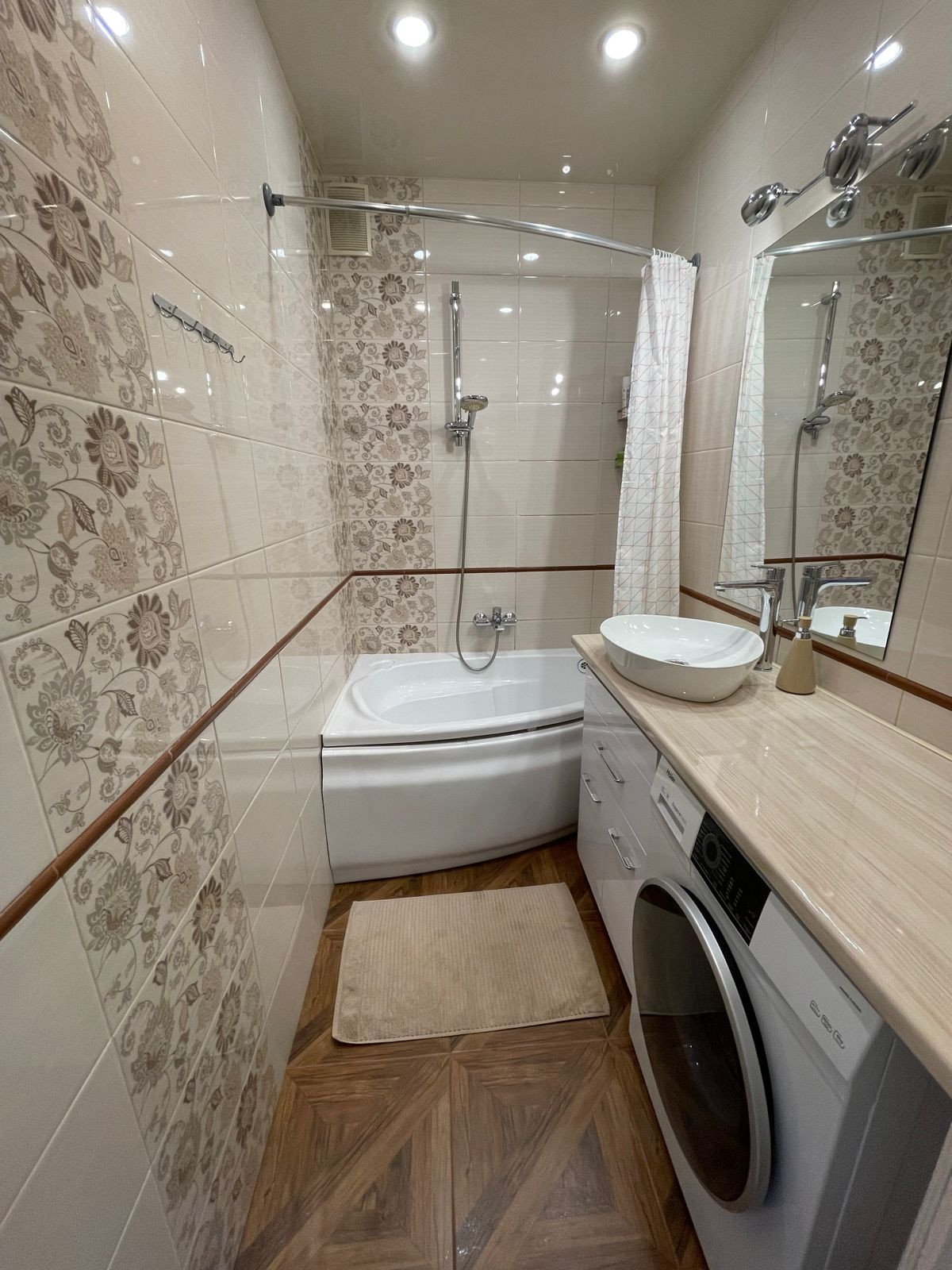 В ванной комнате и с/у облицовка креамической плиткой до потолка.