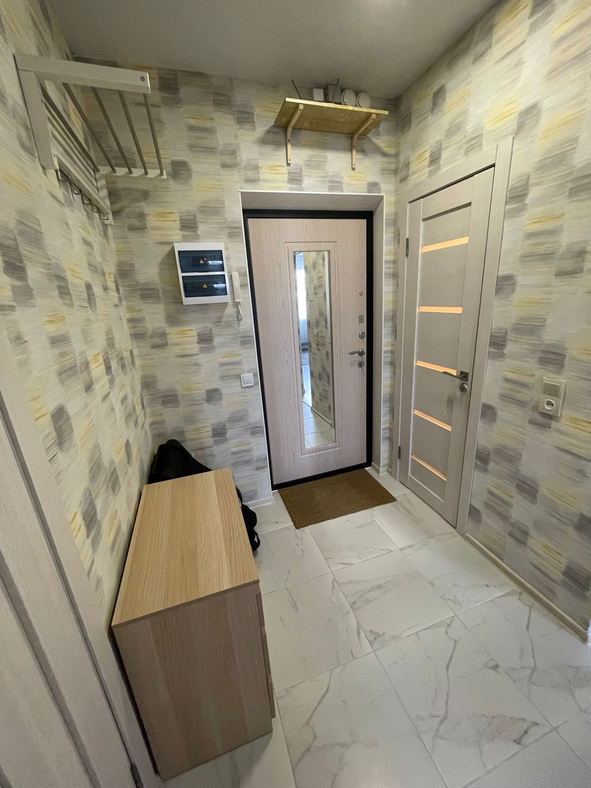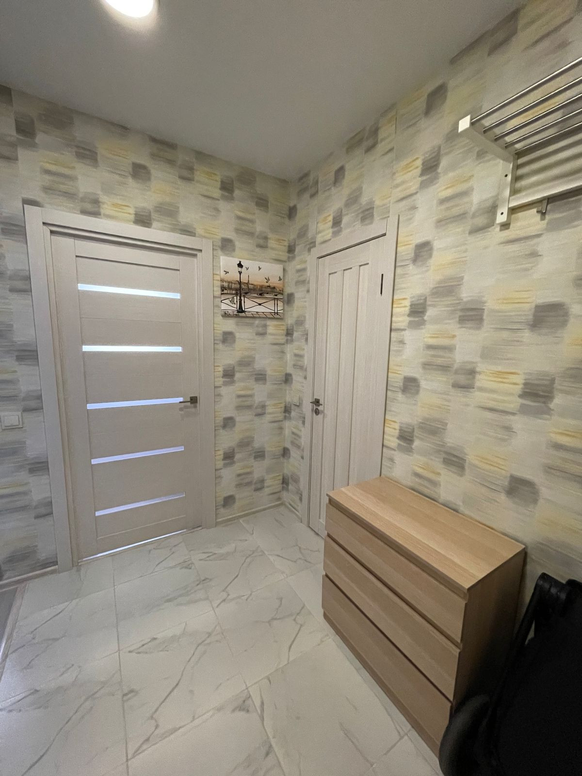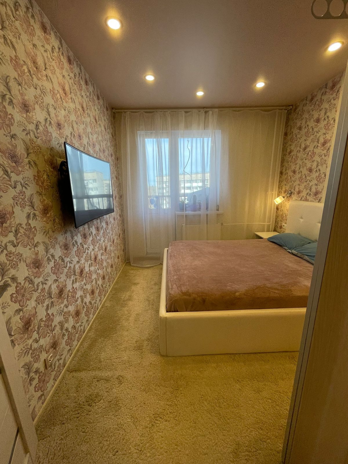 Комфортный 9 этаж, светлая и теплая квартира, во всех комнатах натяжные потолки.