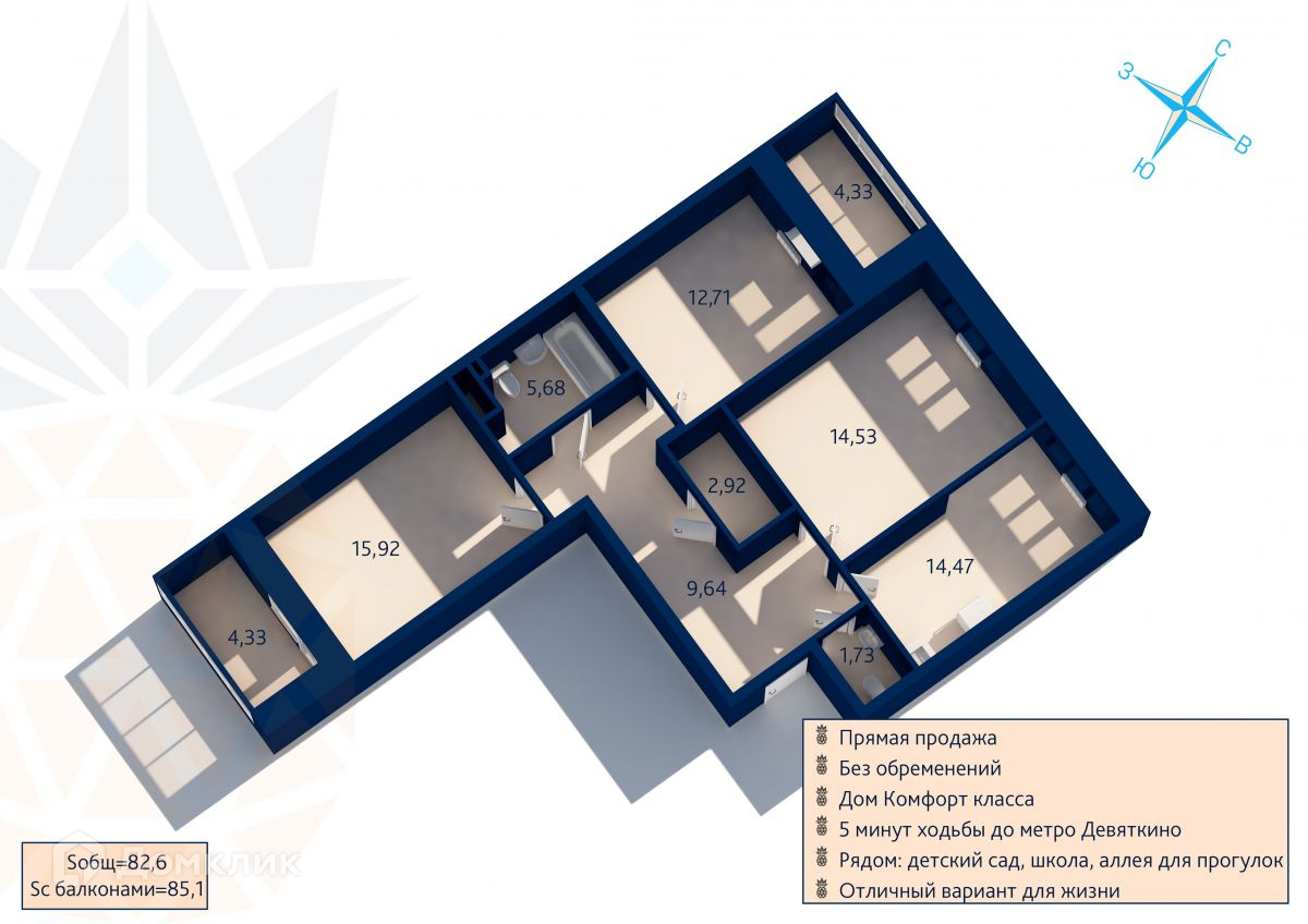 Общая площадь 82.6 м2