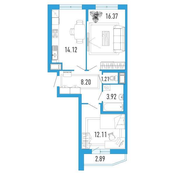 Жилая площадь 28 м2